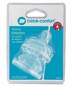 Anti-colique et anti-régurgitation, la tétine base large en silicone Emotion est parfaitement adaptée dès la naissance et jusqu’au sevrage complet de bébé > Silicone transparent, sans odeur ni goût.